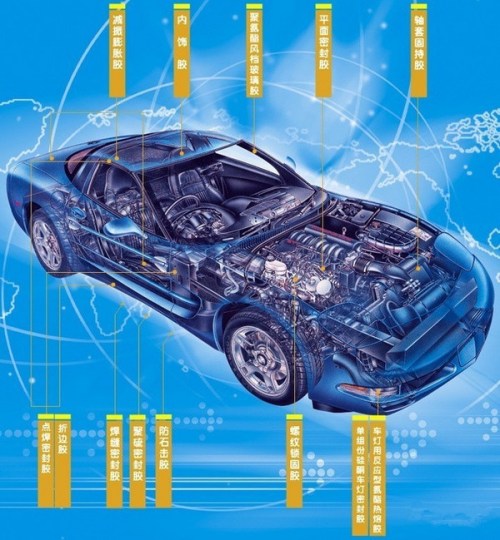 而在今后化工工业不断发展、原材料日益丰富,合成方法和生产设备不断创新的过程中,适应汽车用胶的品种还将会不断增加,汽车制造向节能、环保、安全舒适、低成本长寿命发展的趋势将会对汽车胶粘剂的使用性能和工艺性能提出越来越高的要求,适合汽车产品使用要求和工艺性能要求的水基胶、热熔胶、低密度塑溶胶、高强度结构胶等将会得到更多的应用。